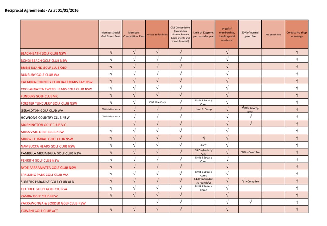 Nelson Bay Golf Club is proud to have a reciprocal relationship with many golf clubs around Australia.